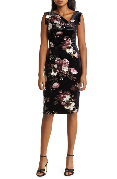 Black Halo Jackie O Floral Velvet Sheath Dress In Moody Rouge Very well made.