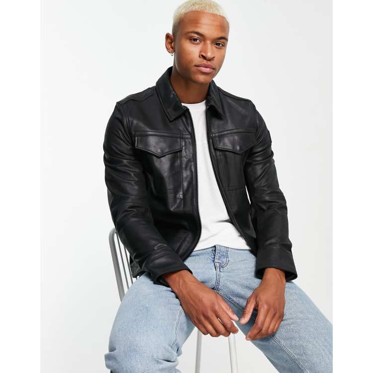 BOSS Orange Jobean leather zip through jacket in black ASOS Very well made.