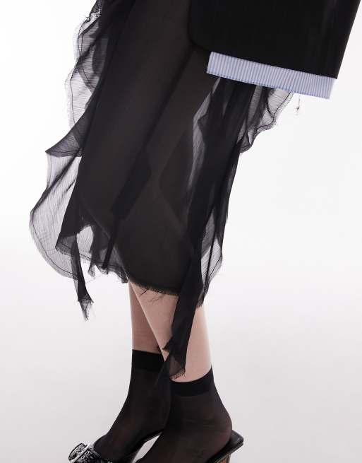 Topshop sheer ruffle midi skirt with raw edging in black ASOS Very well made.