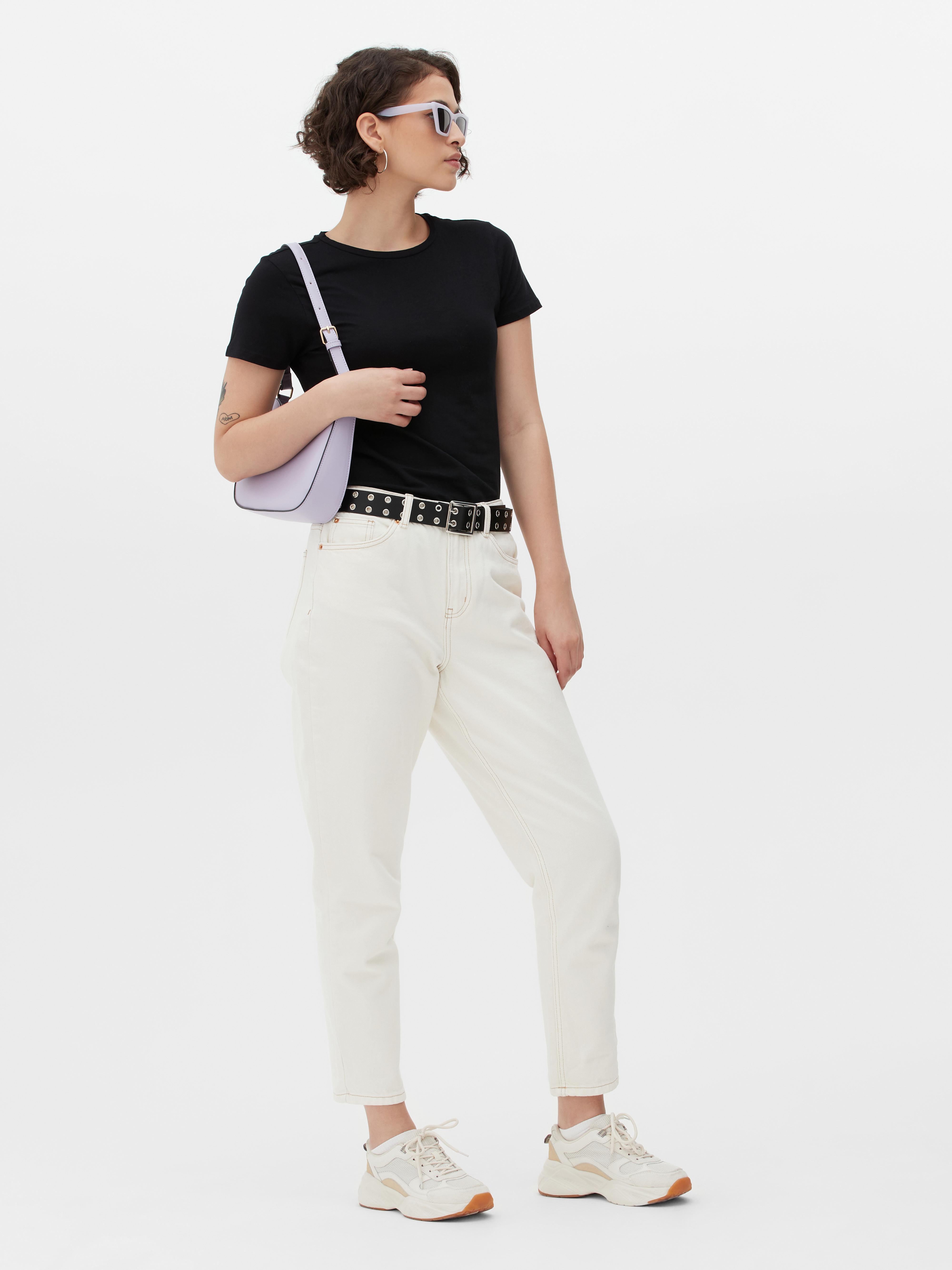 Primark Womens Black Striped Cotton Jersey T Shirt Size M Round Very well made.