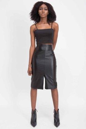 Buy SAMSHEK Black Slim Fit Knee Length Synthetic Leather Womens Very well made.