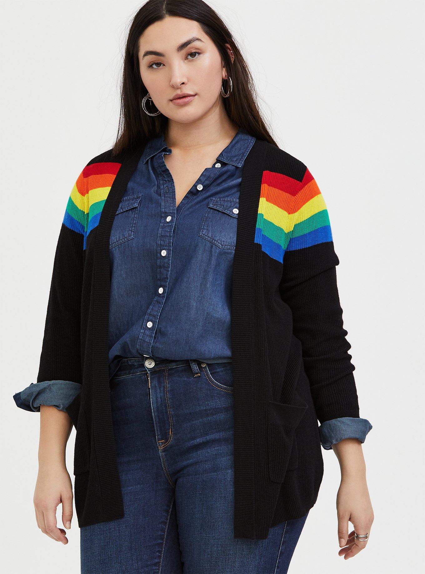 Plus Size Celebrate Love Black Rainbow Stripe Rib Open Front Very well made.