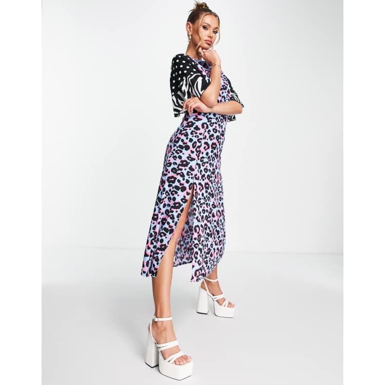 Girl In Mind split sleeve midi dress in blue leopard print ASOS Very well made.