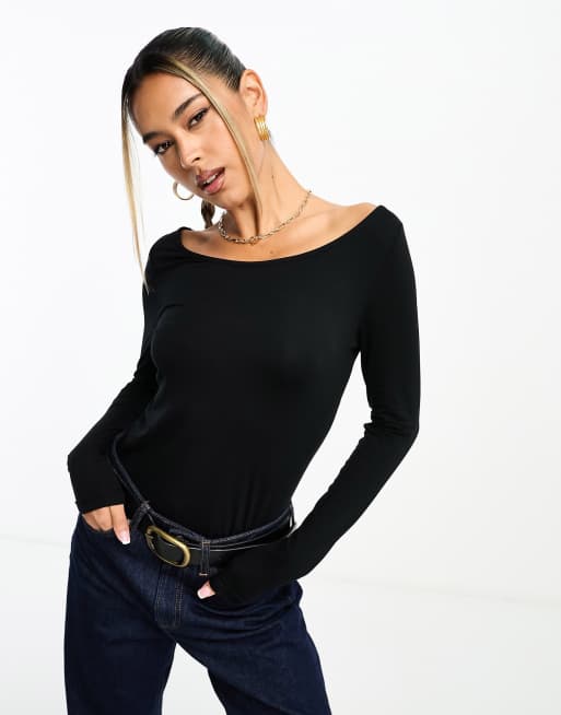 Boat Neck Long Sleeve Top Black NA KD Very well made.
