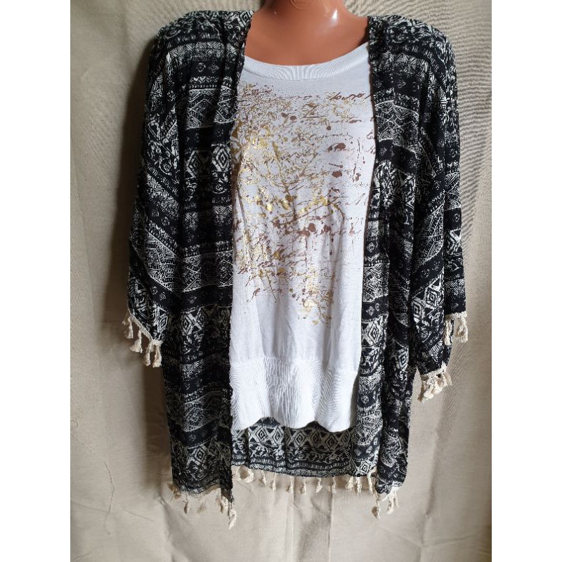 BOHO INSPIRED jacquard geometric long cardigan women open stitch Very well made.