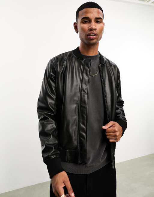 Bershka Bomber in pelle sintetica nera ASOS Very well made.