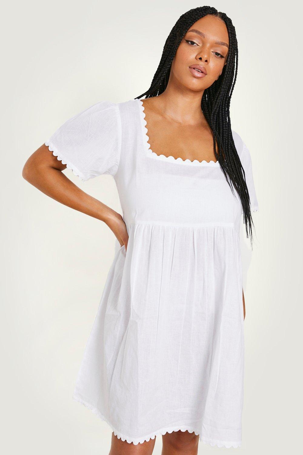 Plus Scallop Edge Linen Beach Dress boohoo Very well made.