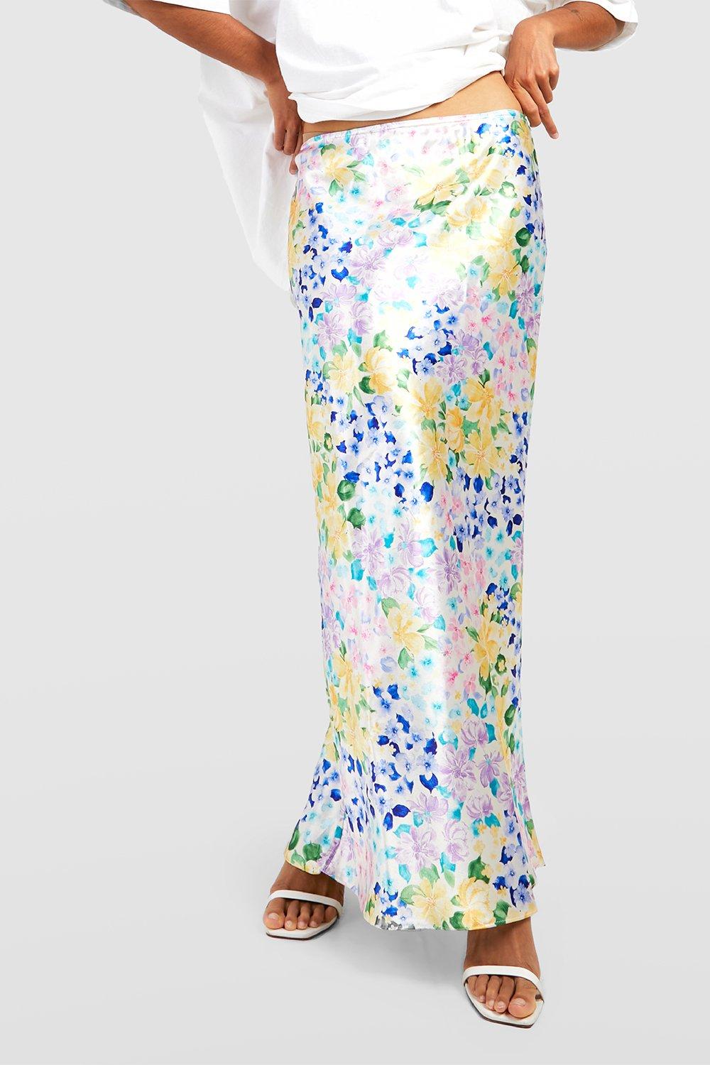 Women s Satin Multi Floral Print Midaxi Skirt Boohoo UK Very well made.