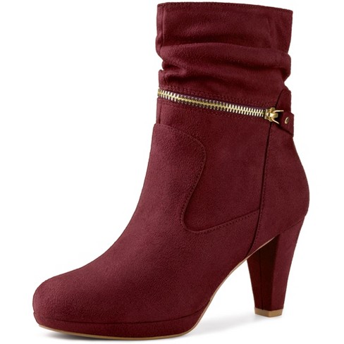 Burgundy Oily Leather Platform Boots Pointed Toe Chunky High Heel Very well made.