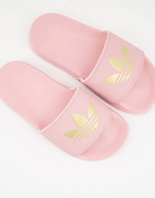 adidas Originals Adilette lite sliders in pink with gold trefoil Very well made.