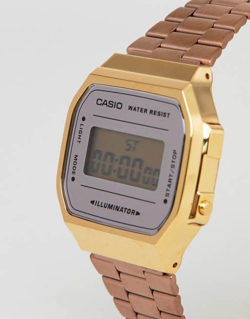 NEW CASIO Retro Classic Unisex Digital Steel Bracelet Watch A168WA1YES Rose Gold Very well made.
