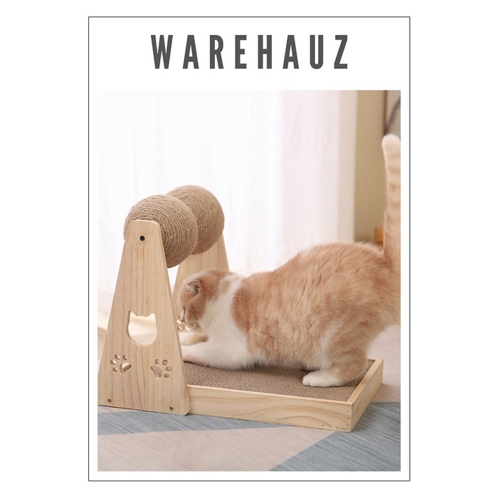 Wooden Base Structure Cat Scratcher With 2 Spinning Balls And Very well made.