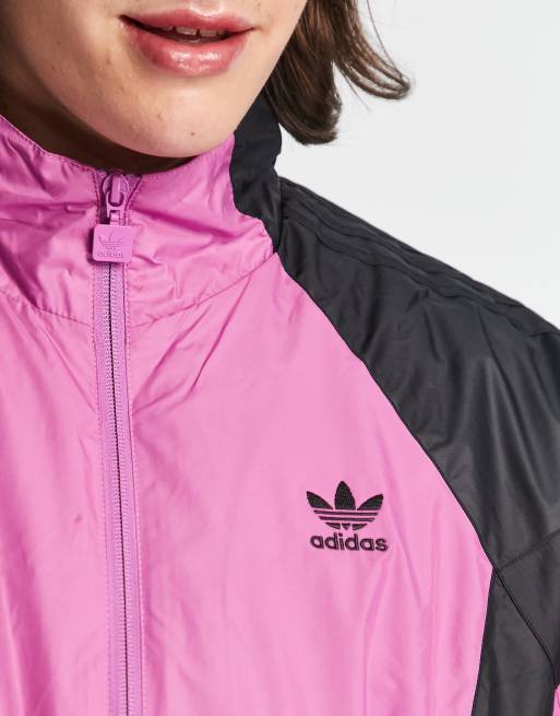 Chaqueta de ch ndal rosa y negra con logo central Rekive de adidas Originals Very well made.