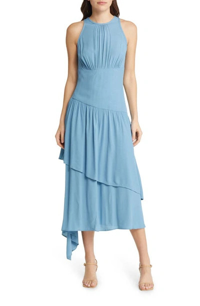 Sleeveless Tiered Asymmetric Midi Dress In Blue Heaven Very well made.