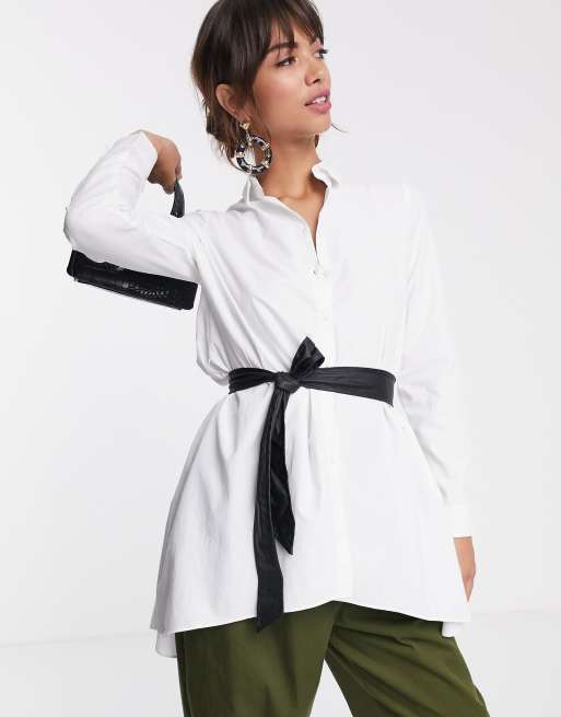 Robe chemise blanche boutonn avec ceinture Very well made.