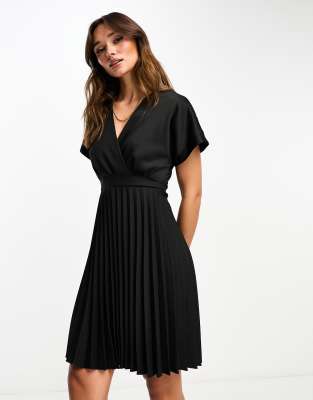 Closet London Petite wrap front pleated mini skater dress in black Very well made.
