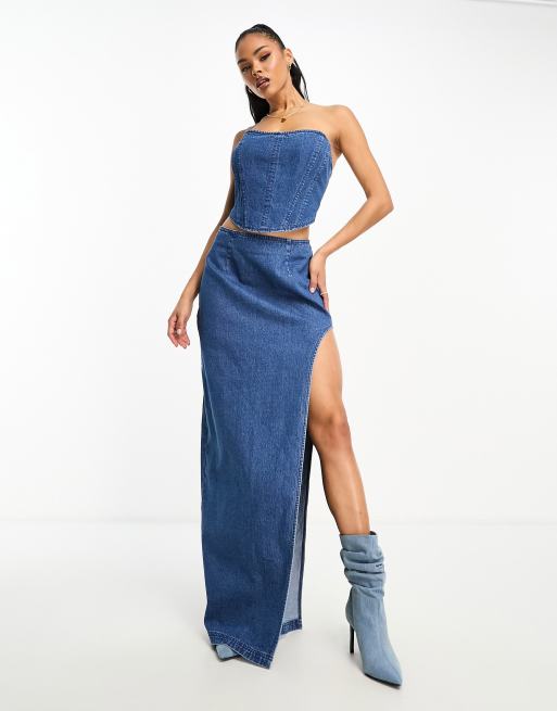 AFRM nadia denim maxi skirt in midwash blue with high rise slit part of a set Very well made.