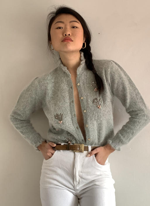 90s angora cardigan sweater vintage sage angora rabbit hair Very well made.