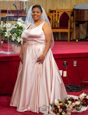 David s Bridal Cummerbund satin ball gown PreOwnedWeddingDresses Very well made.