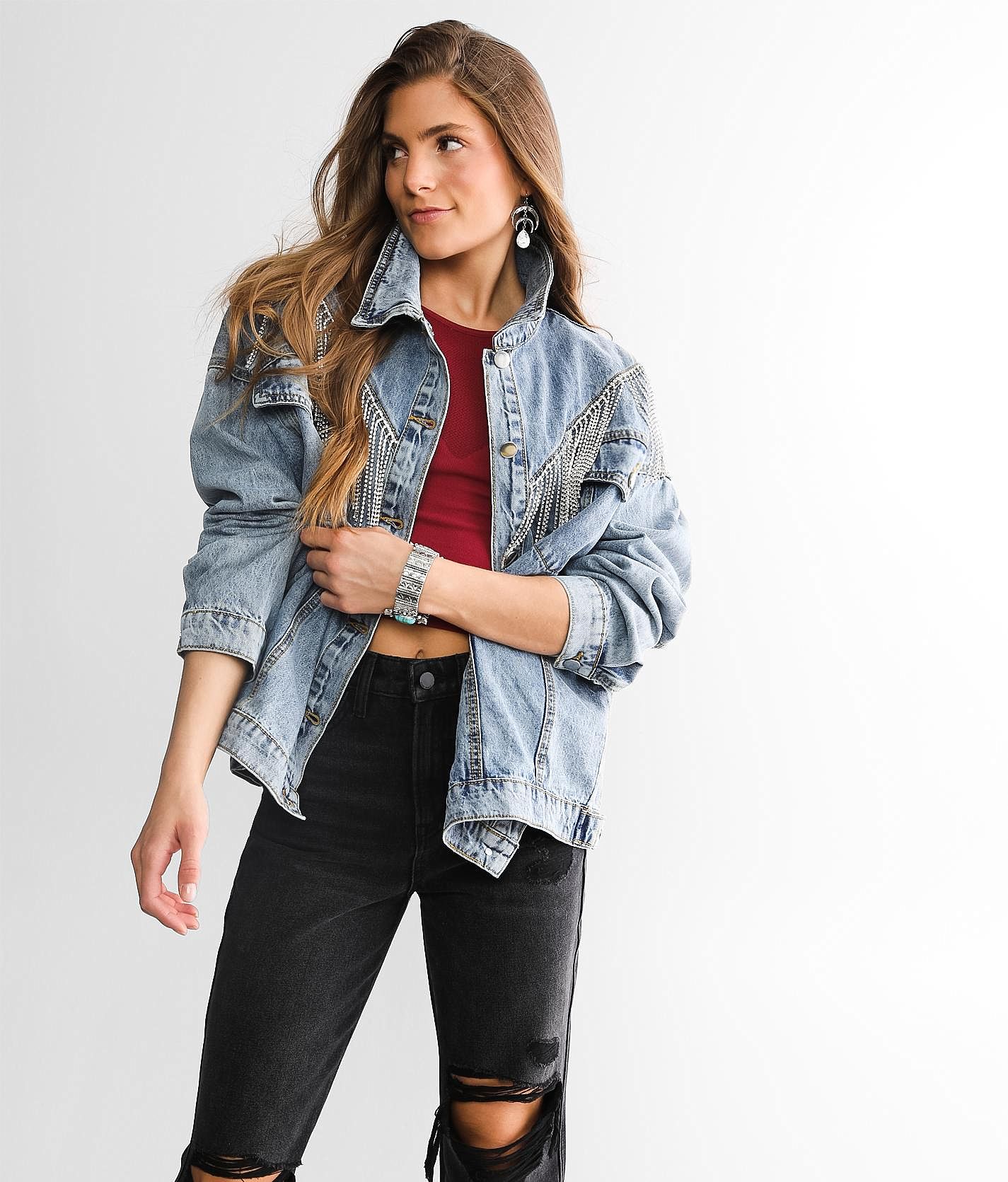 Veveret Rhinestone Fringe Denim Jacket Women s Coats Jackets in Very well made.