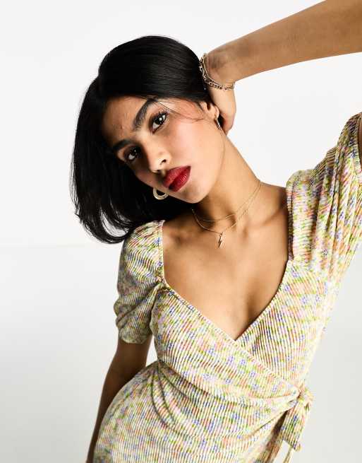 ASOS DESIGN textured mini cap sleeve dress in cream ditsy floral Very well made.