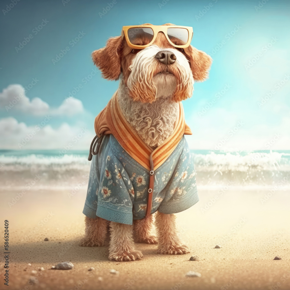 Poodle dog in fashionable summer clothes. Summer dog poodle breed Very well made.