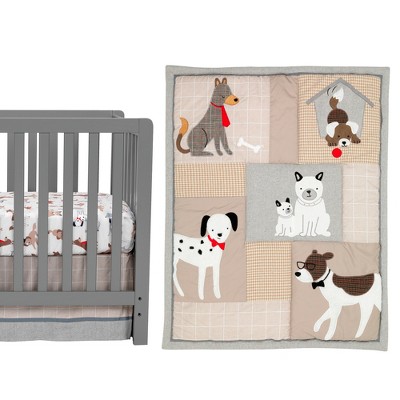 Lambs Ivy Bow Wow Gray tan Dog puppy Nursery 3 piece Baby Crib Very well made.