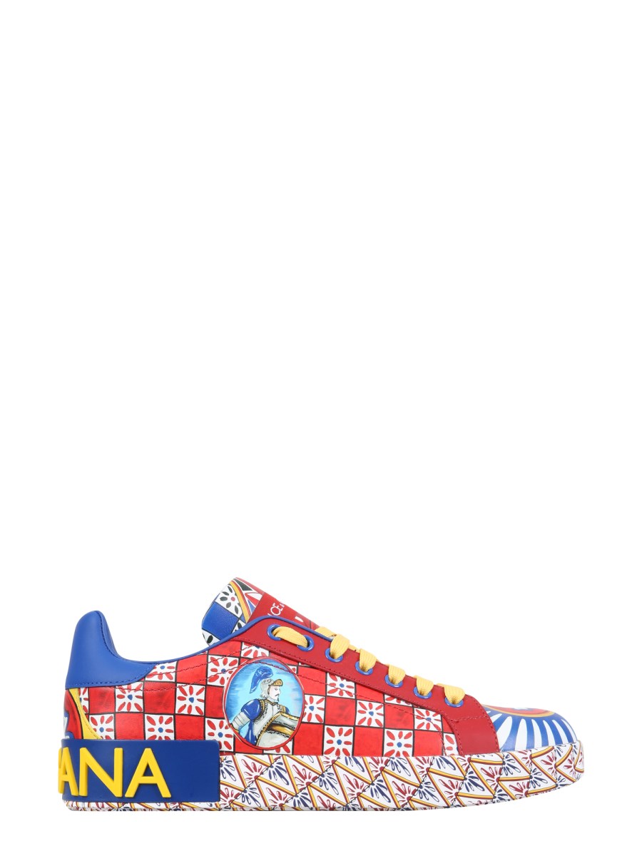 DOLCE GABBANA LEATHER PORTOFINO SNEAKERS WITH CART PRINT Very well made.