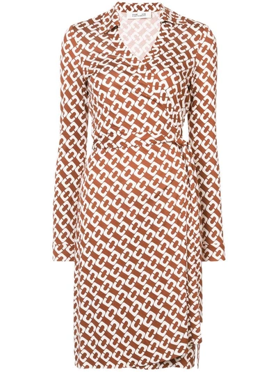 Chain Print Wrap Dress In Brown Very well made.