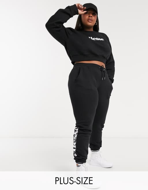 ellesse plus cropped sweatshirt sweatpants set in black Very well made.