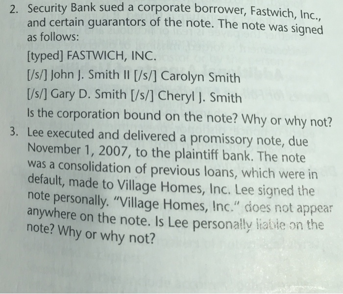Solved curity Bank sued a corporate borrower Fastwich Inc Very well made.
