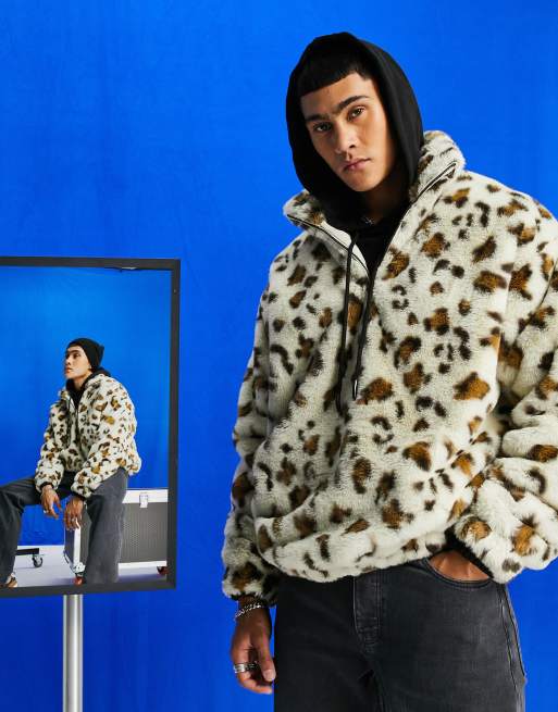 ASOS DESIGN oversized faux fur half zip sweatshirt in all over leopard print Very well made.
