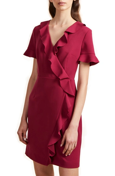 French Connection Alianor Stretch Frill Dress In Baked Cherry Very well made.