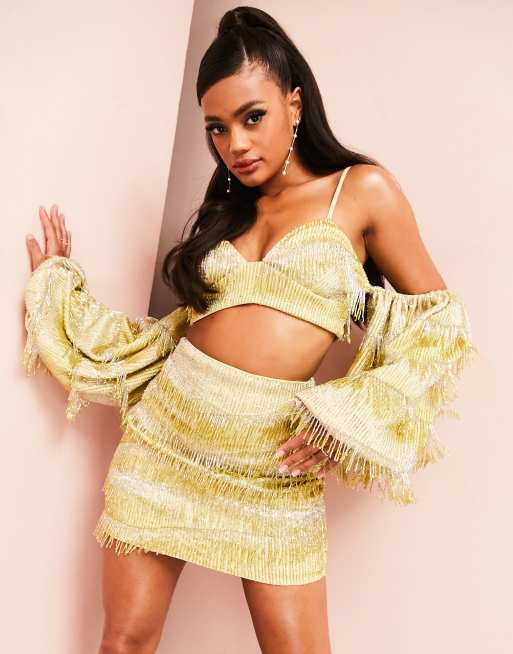 ASOS LUXE fringe beaded mini skirt in yellow part of a set ASOS Very well made.
