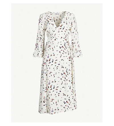 Ganni Floral print Crepe Midi Wrap Dress In Egret ModeSens Very well made.
