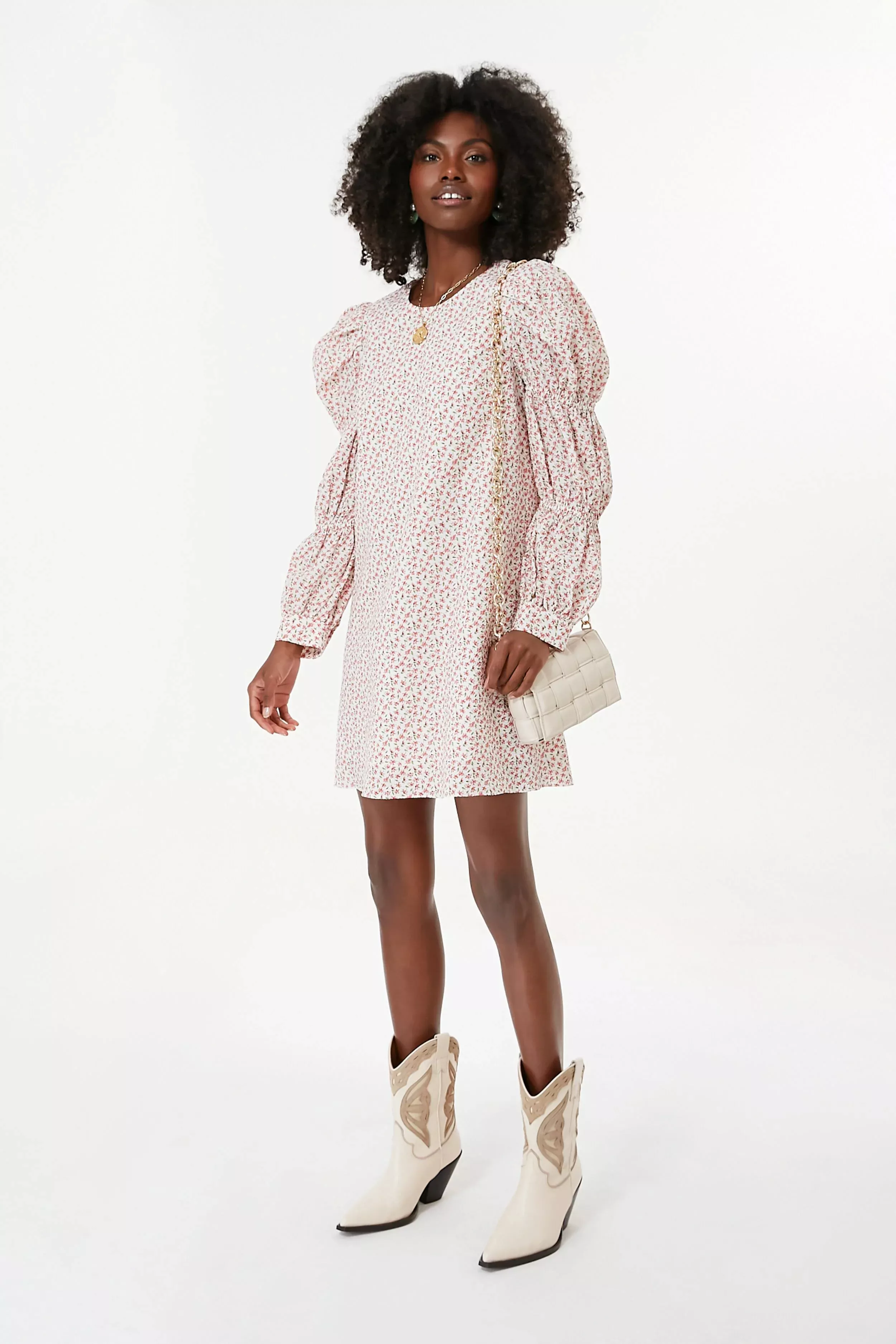 Ganni Floral Print Shirred Georgette Mini Dress in Multicolor Very well made.