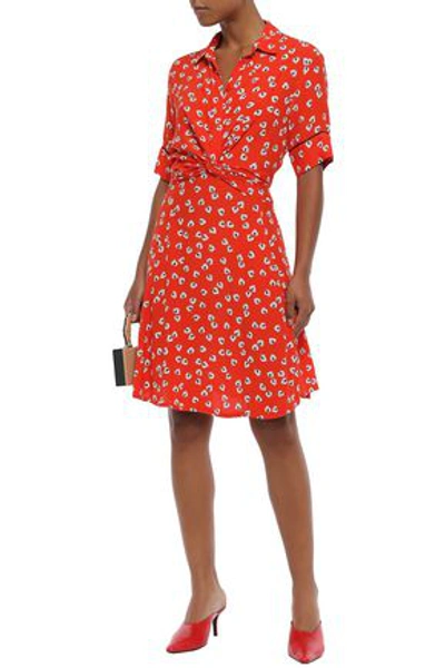 Ganni Silvery Twist front Floral print Crepe Dress In Tomato Red Very well made.