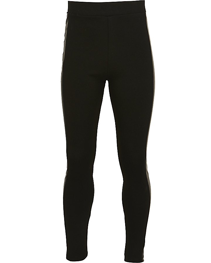 Girls Black Pu Side Stripe Leggings River Island Very well made.