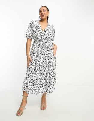 Wednesday s Girl Curve v neck midi tea dress in green floral Very well made.