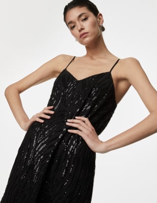 Sequin V Neck Midaxi Slip Dress M S ID Very well made.