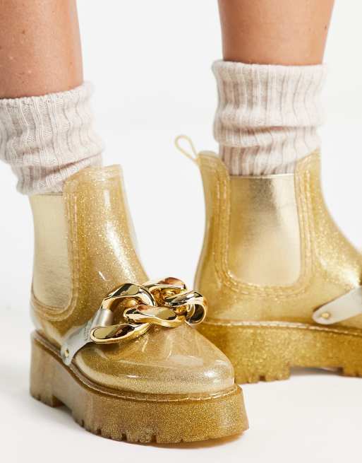 ASOS DESIGN Giselle chunky chain gumboots in gold glitter ASOS Very well made.