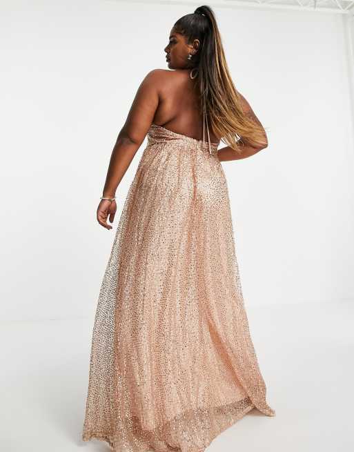 Goddiva Plus glitter cami maxi dress in metallic blush Very well made.