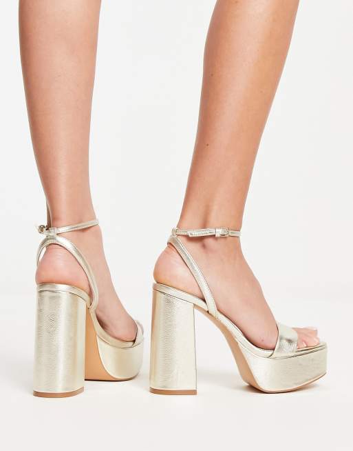 Stradivarius chunky platform heeled sandal in gold Very well made.