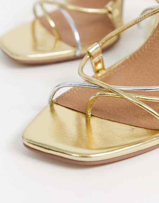 Truffle Collection strappy mid heeled square toe sandals in gold Very well made.