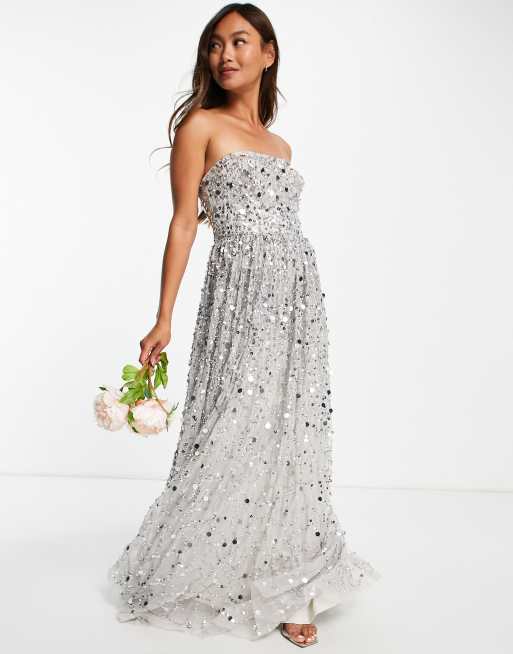 Embellished Maxi Dress in Recycled Polyester Silver Very well made.