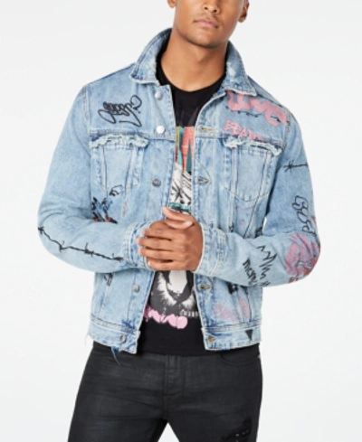 Guess Men s Dillon Graffiti print Destroyed Denim Jacket In Navy Very well made.