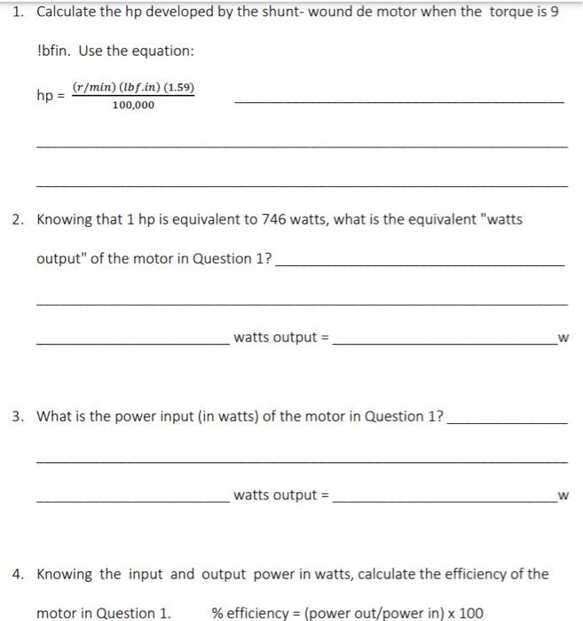 1. Calculate the hp developed by the shunt wound de Chegg Very well made.