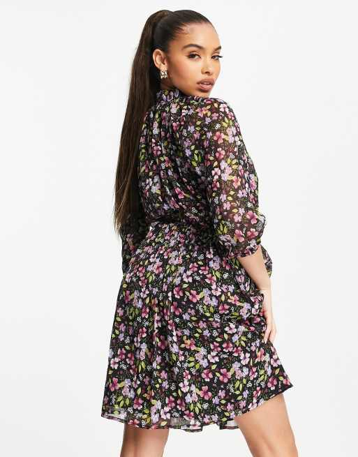 NA KD high neck elastic waist puff sleeve dress in pink floral ASOS Very well made.