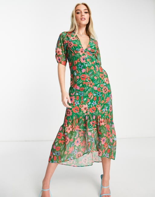 Hope Ivy drop hem midi tea dress in green floral Very well made.