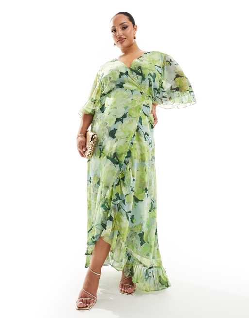 Hope Ivy Plus ruffle wrap maxi dress in green floral Very well made.